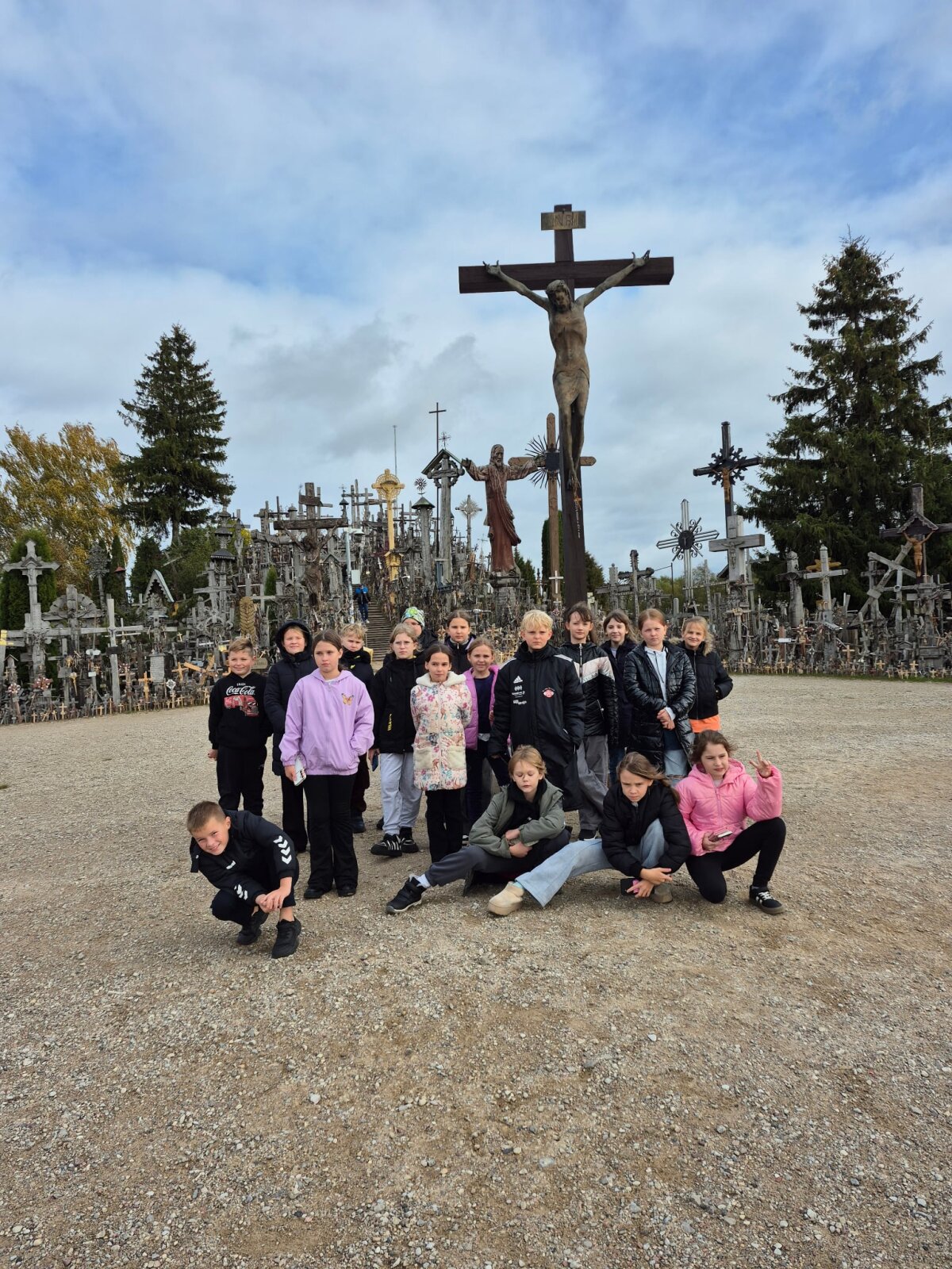 Spalio 15 d. 4 a klasės mokiniai su mokytoja J. Vaičiūniene vyko į kultūrinę–pažintinę ekskursiją- Šiaulius. Mokiniai sužinojo, kad „Rūtos“ saldainių fabrikas – vienas seniausių Lietuvoje veikiančių saldainių gamintojų. Ten dalyvavome edukacinėje programoje, kur sužinojome šokolado atsiradimo istoriją, gamybos procesą ir net patys pasigaminome saldainių. Edukacija buvo labai įdomi, kvepėjo šokoladu, o savo rankų darbo skanėstus galėjome parsivežti namo. Taip pat aplankėme „Rūtos“ šokolado muziejų, kuriame pamatėme senovinius šokolado gamybos įrankius, įvairius įdomius eksponatus ir išgirdome pasakojimą apie fabriko istoriją bei tradicijas. Kitas mūsų maršruto taškas buvo Dviračių muziejus. Čia sužinojome, kaip bėgant metams keitėsi dviračiai – nuo pirmųjų medinių iki šiuolaikinių sportinių modelių. Buvo smagu išvysti retus ir senovinius dviračius, o kai kuriuos galėjome ir išbandyti. Prie Šiaulių simbolio – Saulės laikrodžio aikštėje sužinojome apie jo atsiradimo istoriją bei miesto pavadinimo kilmę, siejamą su saule. Ekskursijos pabaigoje aplankėme vieną įspūdingiausių vietų Lietuvoje – Kryžių kalną. Tai ypatinga, sakrali vieta, kur žmonės iš viso pasaulio palieka kryžius, išreikšdami viltį, dėkingumą ar maldą. Vaizdas buvo nepaprastai įspūdingas ir paliko gilią emocinę patirtį. Kelionė į Šiaulius buvo ne tik įdomi, bet ir labai naudinga – sužinojome daug naujo apie Lietuvos istoriją, kultūrą ir tradicijas. Visi grįžome kupini įspūdžių.