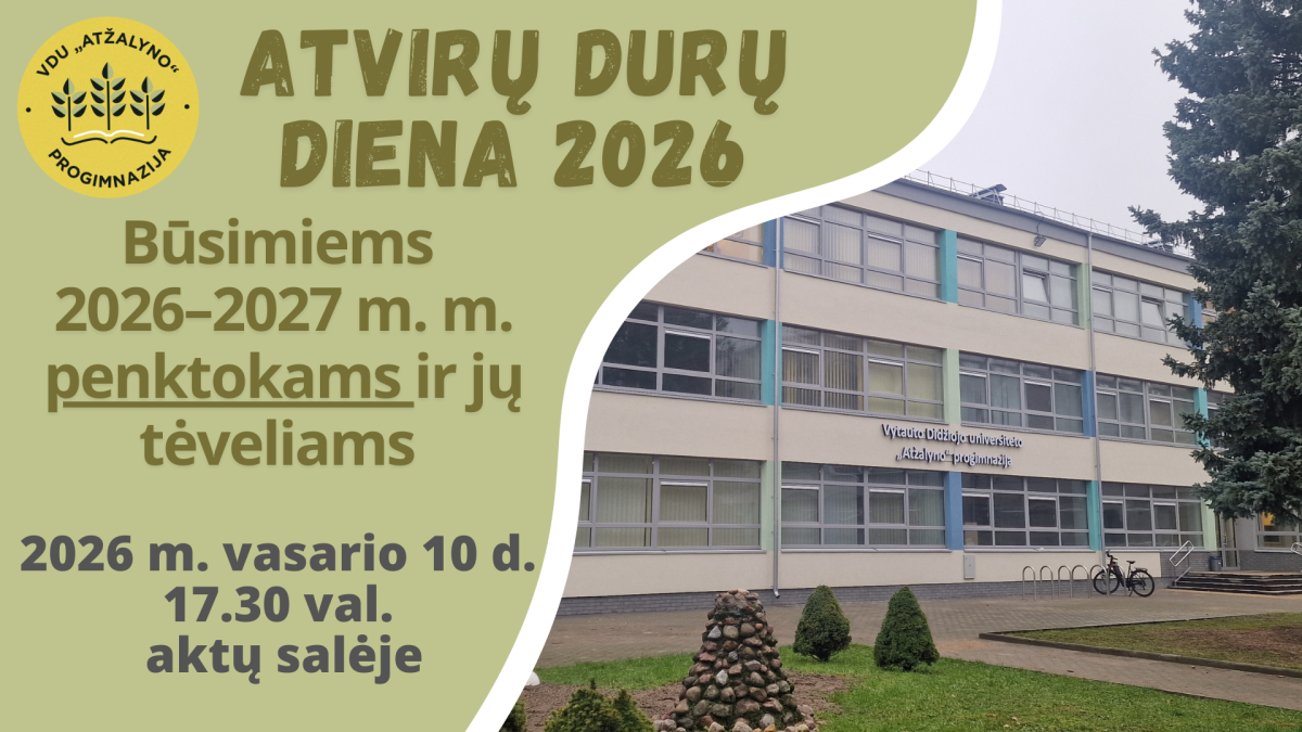 Kviečiame į Atvirų durų dieną 2026 būsimų 1 klasių mokinių tėvelius. -