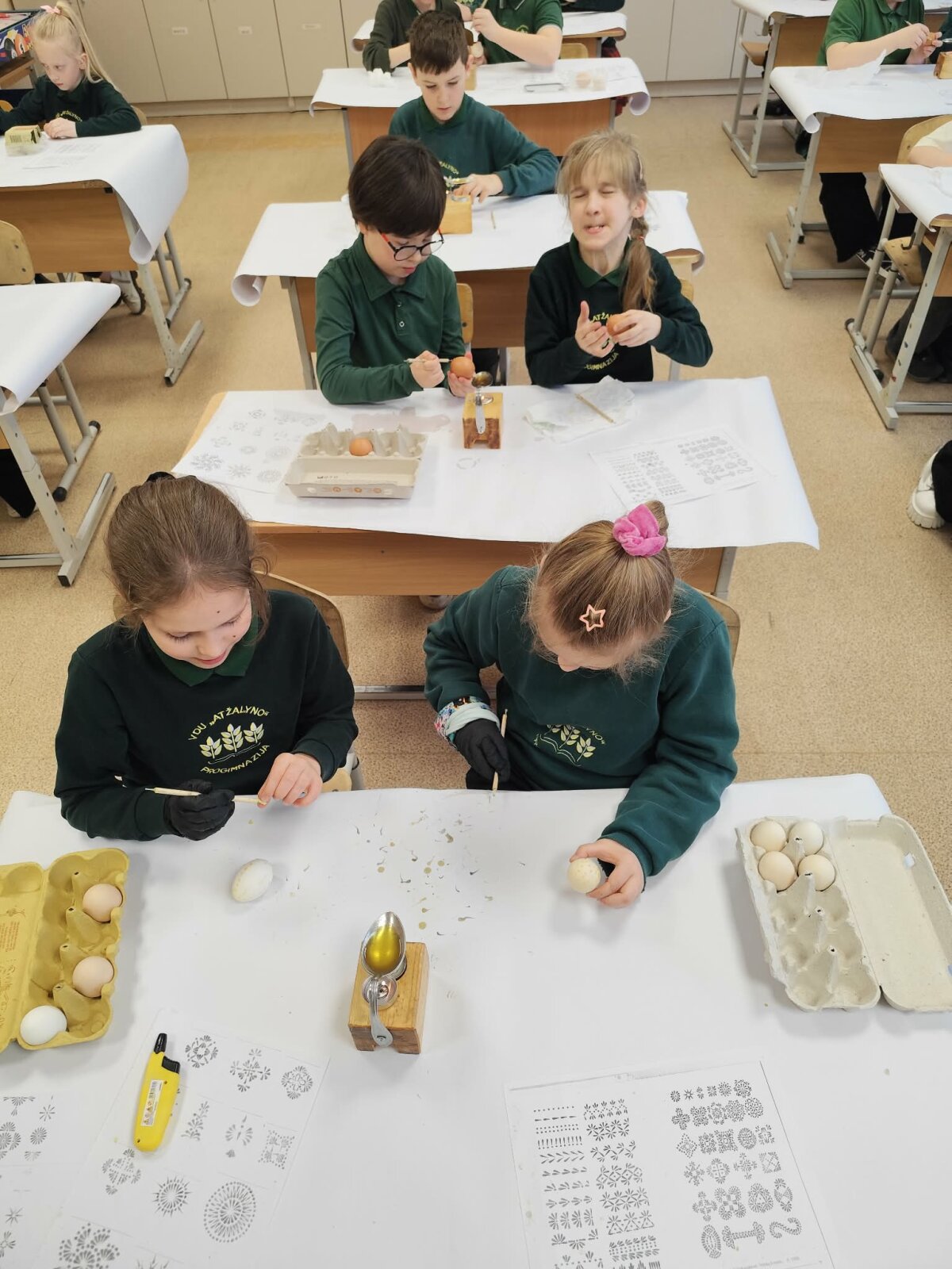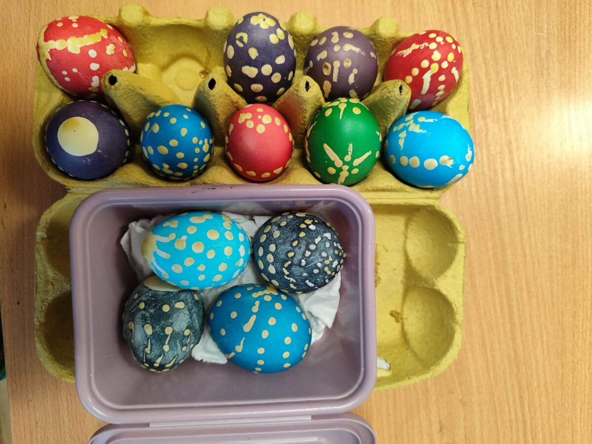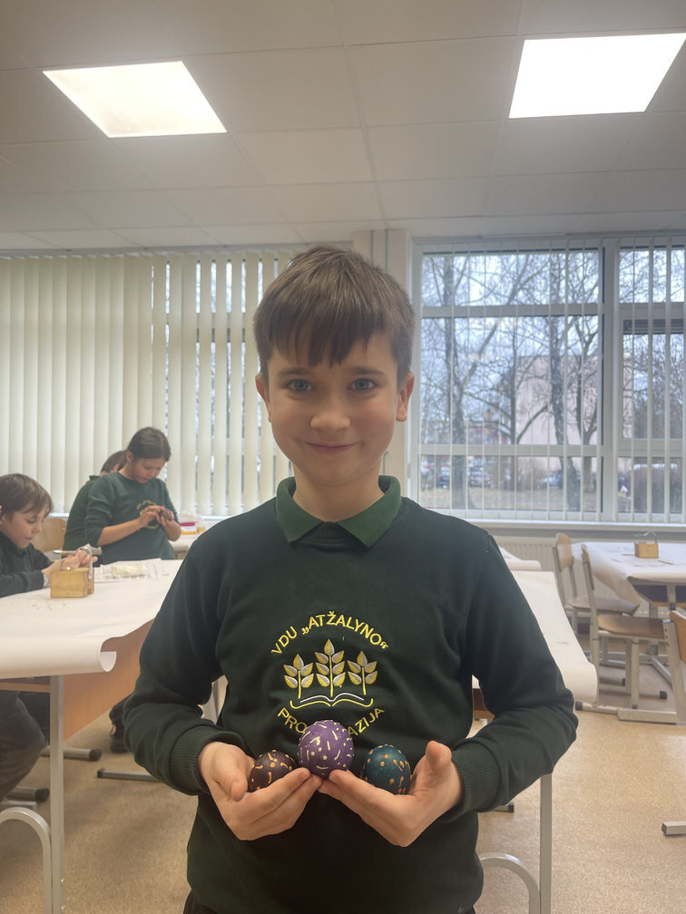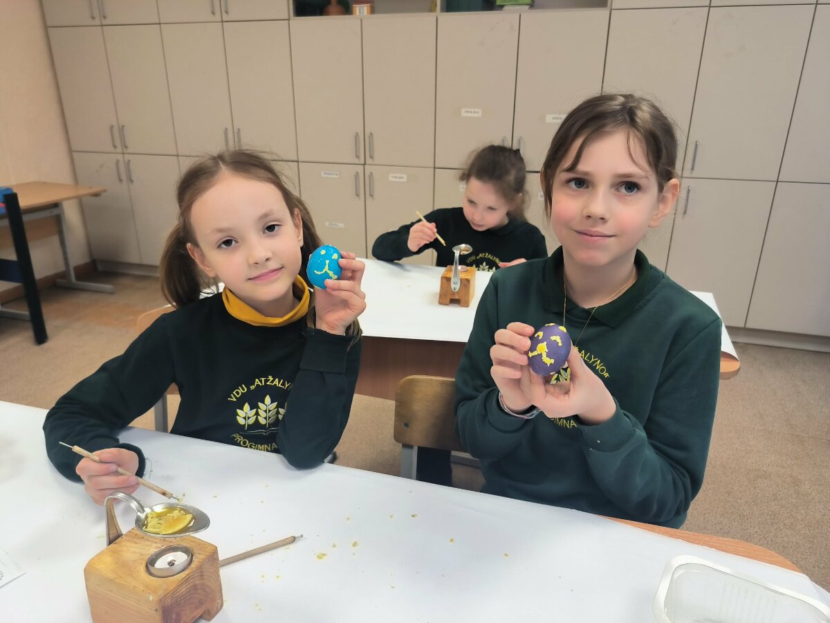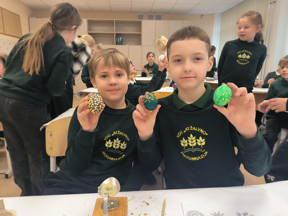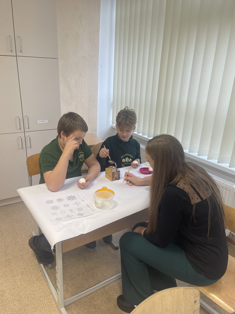 2a, 2b, 2c, 3a ir 4d klasių mokiniai prieš išeidami atostogų dalyvavo edukacinėje pamokoje ,,Margučių raštų magija". Pamokoje mokiniai susipažino su margučių marginimo istorija, sužinojo, kokiais raštais marginami kiaušiniai ir kokios raštų reikšmės. Mokiniai margino kiaušinius vašku, dažė pasirinktomis spalvomis. Šiais margučiais pasipuoš velykinį stalą.
