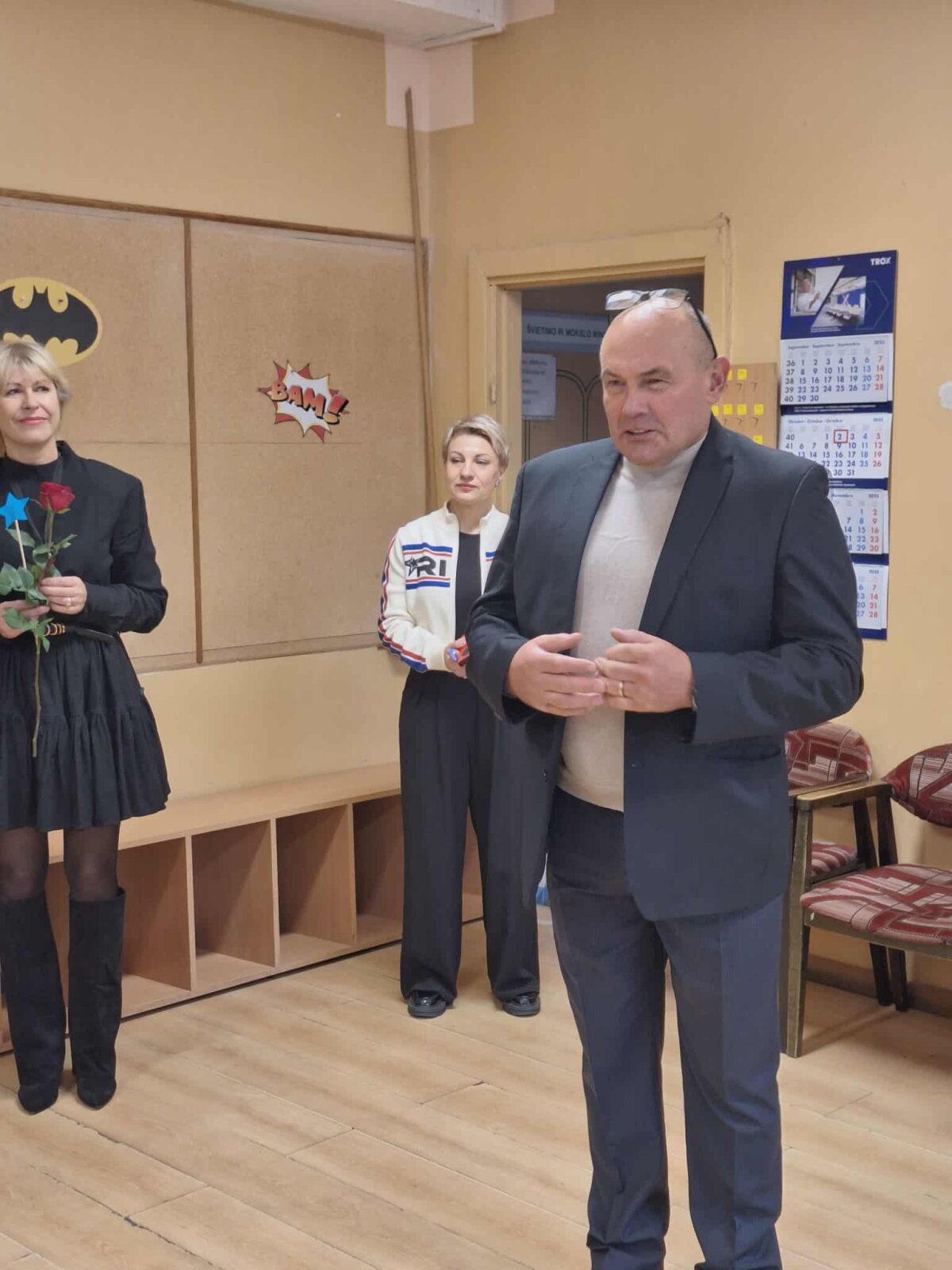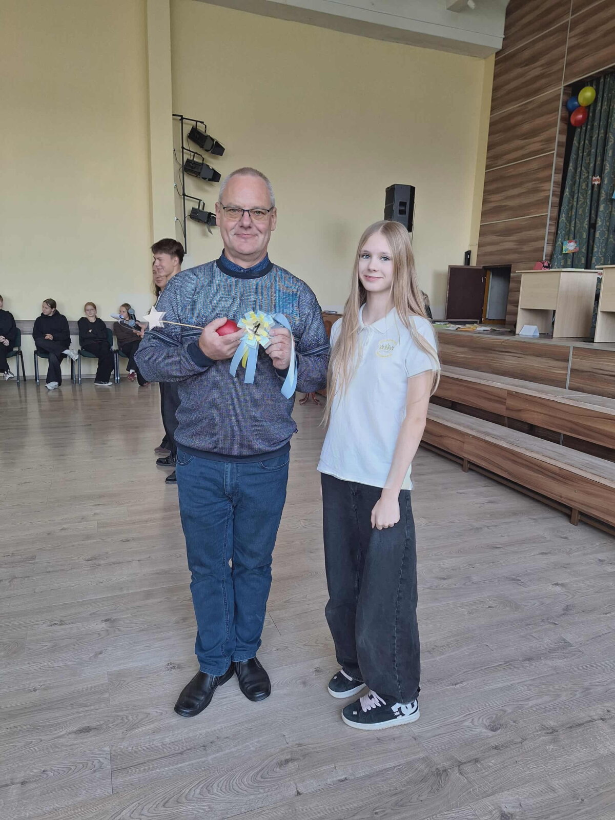 Spalio 3-oji mūsų progimnazijoje buvo šventinė diena, nes minėjome Tarptautinę mokytojų dieną. Iš pat ryto mokiniai sutiko mokytojus, įteikdami jiems stebuklingą lazdelę ir kviesdami nusifotografuoti prie šventei paruoštos superherojaus sienelės. Mokytojų kambaryje šiltus žodžius savo kolegoms skyrė progimnazijos direktorius E. Mikalajūnas, pavaduotoja Almantė ir tėvelių vardu pasveikino Mokyklos tarybos narė Eglė Mikočiūnienė. Taip pat susirinkusius mokytojus nudžiugino mielas pirmokėlių pasveikinimas.