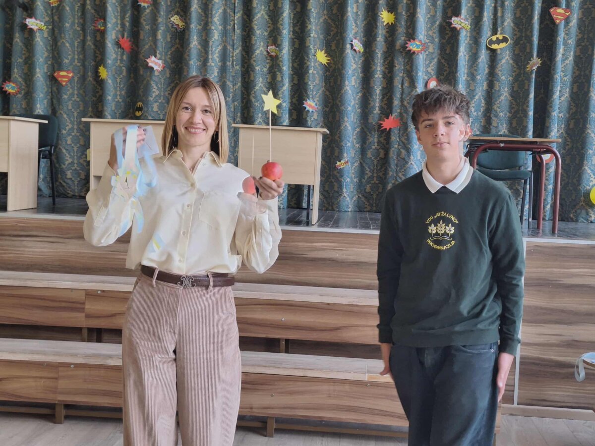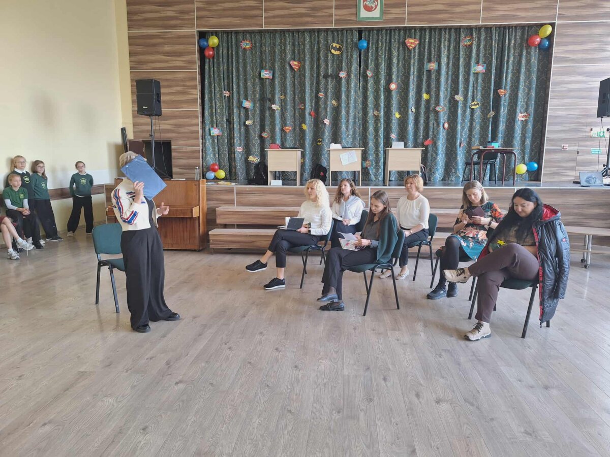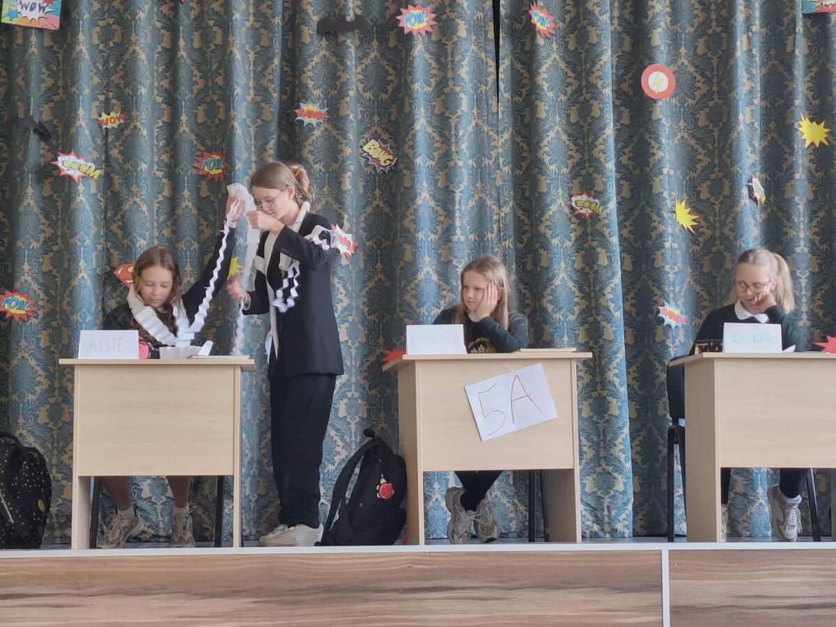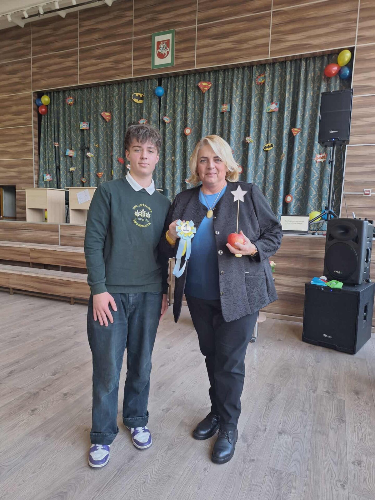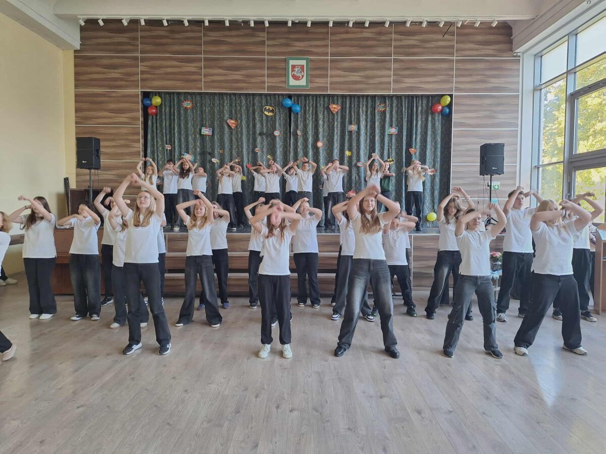 Kaip ir kasmet diena mokykloje pasibaigė linksmąja programa ,,Superherojus". Penktokėliai , vadovaujami lituanistės Dovilės, parodė linksmą spektaklį "Kontolinis darbas", Mėta Paišukovaitė pagrojo fleita, aštuntokai sušoko flašmobą. Mokytojai kaip ir kasmet buvo nustebinti originaliai pateiktų nominacijų.