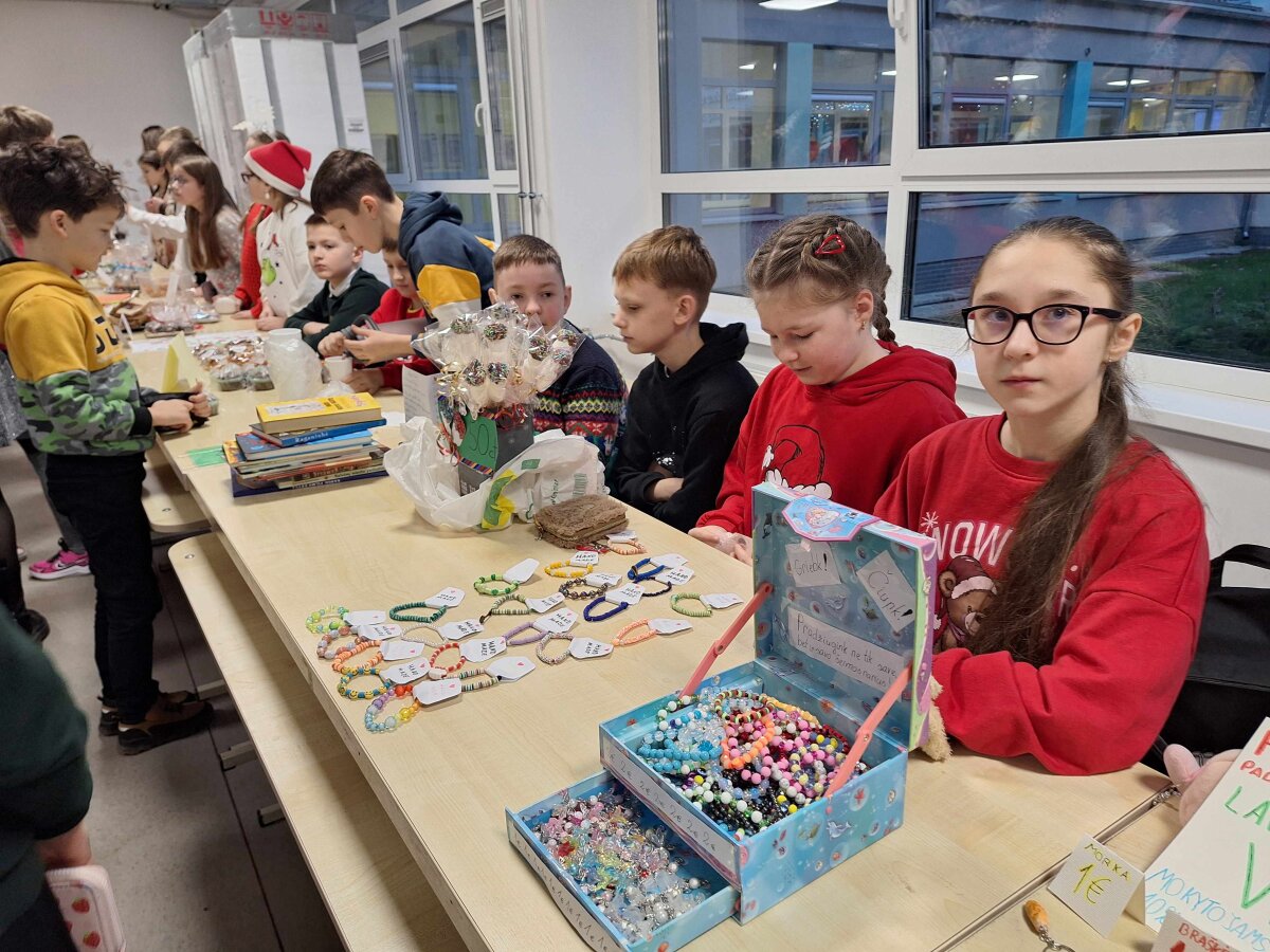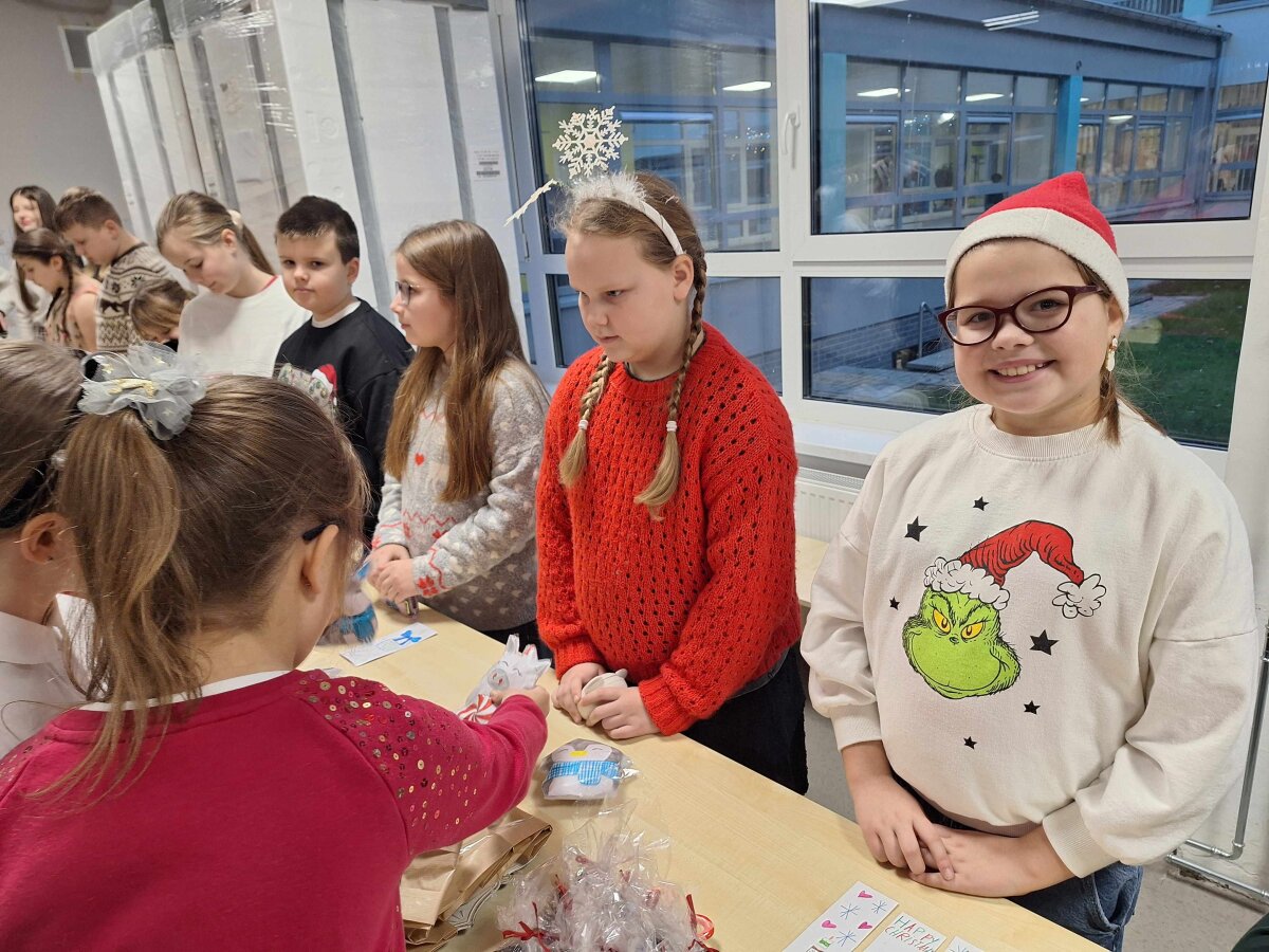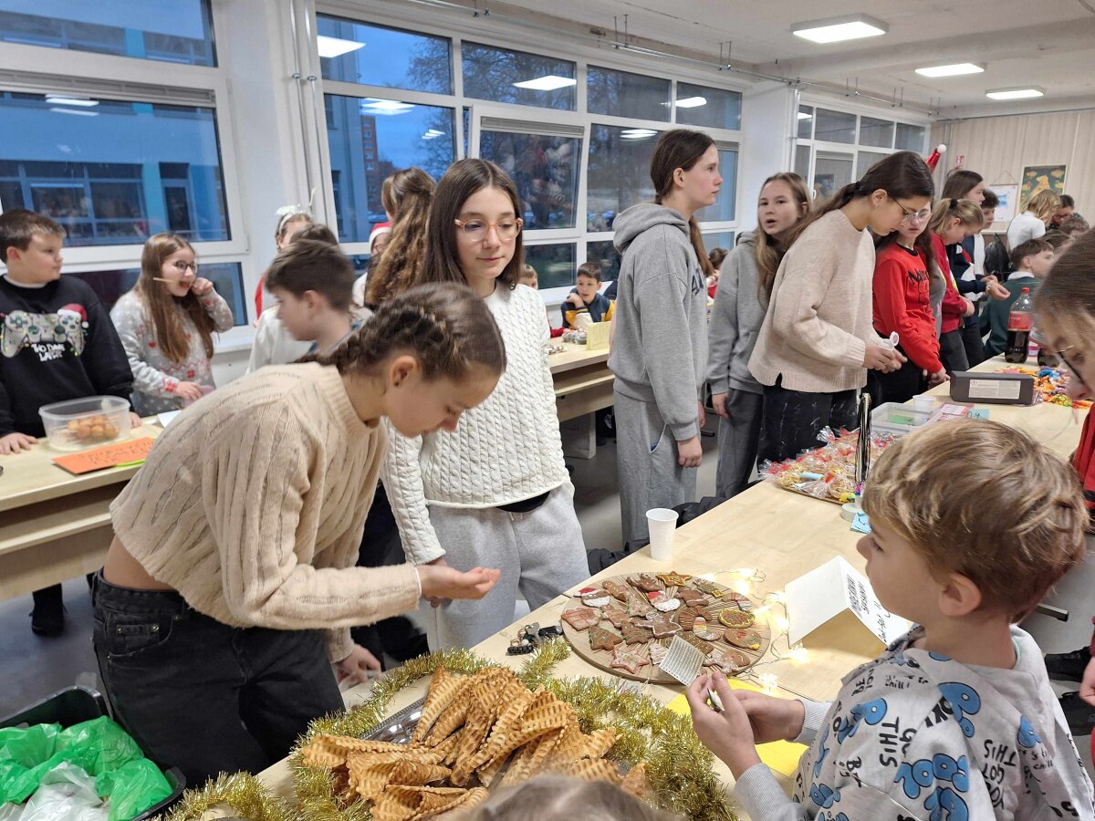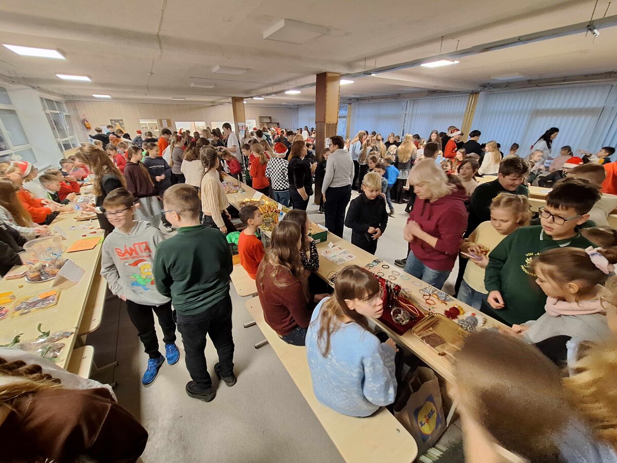 Štai ir liko tik vienas žingsnelis iki Naujųjų metų. Pirmadienį progimnazijos valgykla skambėjo nuo kalėdinės mugės dalyvių šurmulio, kur mokiniai prekiavo savo ar tėvelių dirbiniais. Ir prekiautojai, ir pirkėjai vos tilpo į erdvią valgyklos salę... Iš aš ten buvau, akys nuo grožio mirgėjo, nuo skonio ir kvapų galva svaigo, pinigėliai kišenę draskė...